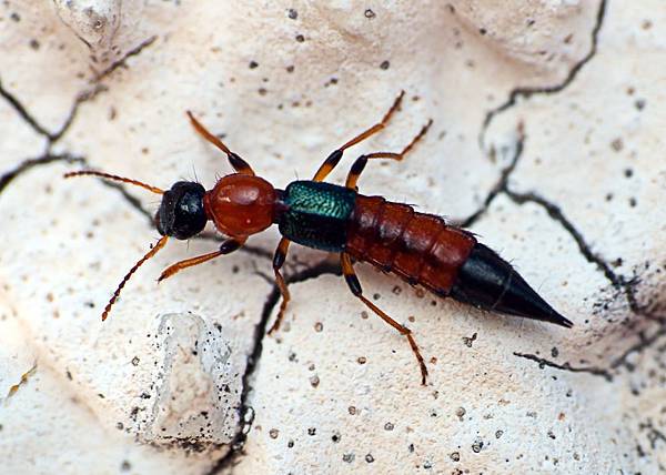 隱翅蟲看起來很像白蟻,黑黃相間的體色是最大特色。每年四到十月,在水田、草地、樹林等郊區出沒,由於身體含有隱翅蟲毒素,只要接觸皮膚10到15秒就會被灼傷,造成紅腫、發炎,甚至潰爛的情形,在醫學上就稱之為「隱翅蟲皮膚炎」。